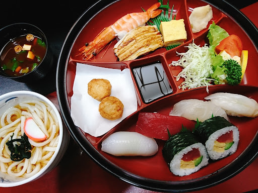Read moreお昼のランチを頂きました 単独でしたので 憧れ(笑)のカウンターに案内され すしランチ980円税別 昼時とあって店内はボチボチの客入り 提供も早く、まず器の大きさに圧倒 有頭海老に穴子の握りに玉子焼き マグロ、イカ、白身、貝の握りに巻き寿司2 優しげな大将に聞いたところ白身は真鯛で貝はツブ貝とのこと 他に揚げた練り物にミニサラダ 小うどんに赤だしまでついてます 寿司はさすがで安い回転すしに比べネタも大きく美味しく頂きました☺️ 小さいといえどうどんプラスで満腹 チェーン店などでは提供されない赤だしは 愛知県民にはたまらない逸品(笑) 具はシンプルに巻きフに豆腐に三つ葉でしたが おかわり自由ということで、おかわり頂きました✨ 店内は明るい照明とは言えなかったが 落ち着いた感じで店員さんも気さくな 家族経営の雰囲気でキライじゃないかな🎵 昼から1,000円のランチは贅沢だったが コストパフォーマンスは高く ...