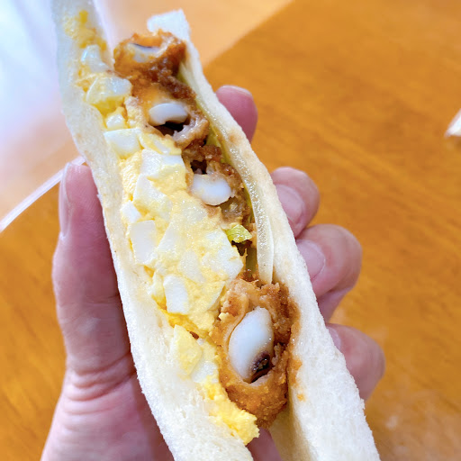 Read more西尾で有名なお弁当屋さんのあかりい菜の源流にあたるこうじやさんへ。場所は上横須賀の西になりますが、車で行くと一方通行で迷いがちなエリアです。お店の前に駐車場あり。 店内は広いですが、入って右側にパン、左側は物販コーナーになっています。パンはあかりい菜でも買うことは出来ますが、食パンなどはここでしか買えないような気がします。 購入したのはトルティーヤチキン(310円)、イカリングフライサンド(260円)と食パン。トルティーヤチキンはキャベツ多め。照り焼きチキンが入っています。イカリングフライサンドは我が家の定番人気商品。食パンは焼くとカリフワで大変美味しいです。 品数豊富なのでま...
