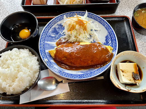 すごい久しぶりの訪問。 チーズオムレツ定食(デミグラスソース)をオーダー。 生たまごはサービスだそうで卵かけご飯にして食べた。 お味噌汁とご飯はセルフ。 たまごタマゴしたランチになったけど美味しかった。 生たまごサービスとか最高すぎるでしょ! 相方は日替わりランチ(からあげ弁当)。 からあげ、美味しかった〜。だそうです。 客層は男性の職人さんがほとんど。納得。 アフターコーヒー(¥200)も飲み、大満足のランチです。 ...