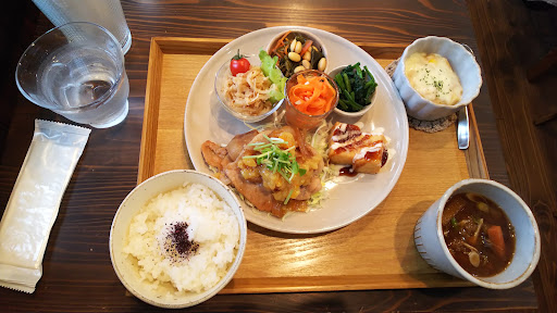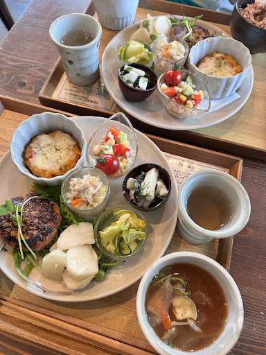 Read more月替わりランチをいただきました。 全てのお料理が丁寧な手間ひまかけたもので大満足です。 ホットコーヒーもさっぱりとした味。酸味が苦手なわたしにはドンピシャ。 暖かみのあるインテリアも素敵です。 デザートも美味しそうだったのですが、満腹だったので、自分のおみやげにマフィンを購入。 13時頃、たまたま空いてる時間帯だったようで、穏やかな時間を過ごすことができました...
