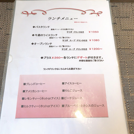 Read moreパスタが美味しいと聞いて伺いましたが、メニューを見て何故かピラフが気になってしまいましてww。今週のライスランチ(ピラフ)はサラダ、スープ、ドリンクが付いて1,080円。サラダは2種類とガーリックトースト。スープは冷製スープとどちらも優しい味わいで美味しいです。 ピラフは具だくさんで量も程よく味もよし。モリモリ食べてしまいました。お連れはパスタランチにしていましたが、かなり美味しいと評判良かったです。次回はパスタにしてみたいですね。 店内は清潔感があり落ち着いた雰囲気。女性客が多く、お店も女性が数人で切り盛りされているようでした。こういうお店がもっとあっても...