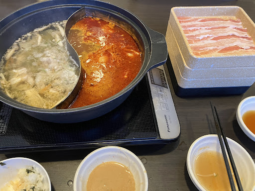 ーー 人生初しゃぶ葉 ーー 以前から一度は来てみたいと思っていた「しゃぶ葉」さん。初めての訪問です。頂いたのは、「豚食べ放題コース」1759円。これに60歳以上割引110円とアプリクーポン割引8%でしめて1518円。ホームページには200円安い60分限定コースあるとありましたが、よくわかりませんでした。 閑話休題。お肉は、豚肩ロース、豚バラ、鶏肉がいただけます。豚バラだけだとくどいかもと思って肩ロースのある方にしましたが、豚バラだけで十分です。しゃぶしゃぶなので脂が落ちてくどくなかったし、豚バラの方が味が濃いので豚肉食べた感がしっかりありました。 出汁は基本の白だしと無料でつけられるユッケジャンだしの中辛にしました。結構辛めでした。汗が止まりません。 つけだれは、9種類?ぐらいありましたが、そのうちの4種類試しました。まぁ好き好きですね。ゴマだれが、好みの感じではなかったのが残念でした。タマネギポン酢みたいなタレが中々良かったです。薬味も色々あったので試すと楽しいかもしれません。 他には、野菜やご飯やカレーやアイスクリームなど食べられます。 ドリンクバーなどは別です。 お肉は11皿いただきました。食った〜と言う感じはありますが、大満足かと言えば、ちょっと??またくるかと問えば、もういいかな。。。。全体に何か物足らない。同じ1500円出すなら美味しいラーメン...