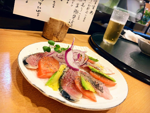 大将のおすすめの一品から始まり、本日のメニューからも3品、『真鯵、〆鯖、真鰯の盛り合わせ』『島らっきょの天ぷら』『ふぐの唐揚げ』メインは『大将のこだわり寿司11貫』握りをお願いしました。