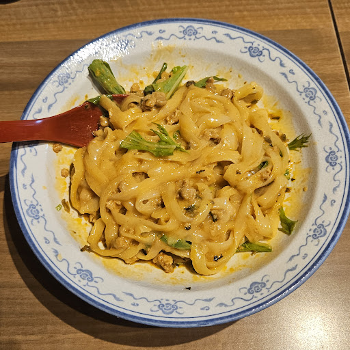 2023年6月、ランチにて初訪問しました。 平日11時50分頃の訪問で、先客は1組でした。 汁なし担々刀削麺(970円)と餃子(450円)を食べました。 汁なし担々刀削麺すごく美味しかったです。 欲を言えばレンゲ一盛り程度の追い飯があったら最高です。 餃子も美味しかったですが、汁なし担々刀削麺があまりにも美味しかったので印象が薄めになりした。 量が少なめとの口コミがありましたが、自分はちょうどよかっです。