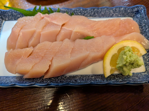 ■注文したメニュー ◯刺し系 ・手羽刺し → 都内の焼鳥屋で手羽刺しを出す店はまだ出会ったことないです。。 見た目はささみっぽいけど、弾力のある歯ごたえと旨味がギュッと詰まっとってめっちゃ美味しいです! ええワサビと一緒にどうぞ 笑