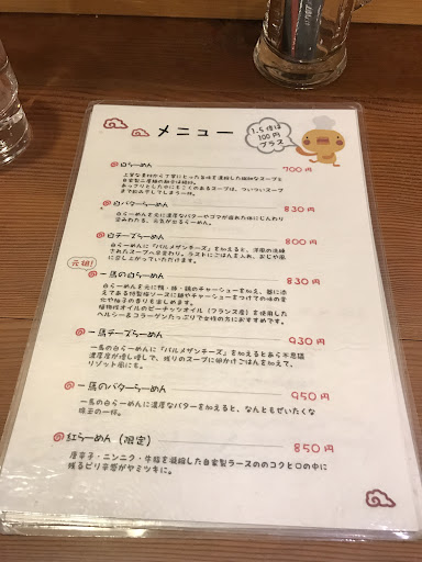 Read more主な麺メニューは ・らーめん 750円 ・バターらーめん 880円 ・チーズらーめん 880円 ・紅らーめん 850円