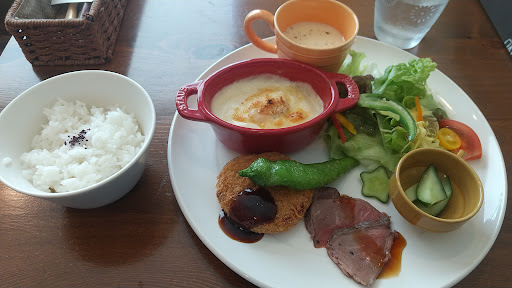 Read more自社農園の食材の コンパクトで美味しいランチを食べられる場所です。 西脇市駅から近く。ファッションしまむらの裏手。 アプローチ部分から突然外国のカントリー調のおしゃれな世界です。 スウィーツにこぼれ梅などみりん粕というちょっとマニアックな食材を使ったり 素敵なカフェとしてもおすすめです。 ちょっと忙しい時間帯はスタッフが人材不足で大変そうだなと思いました。 ランチは3種類あります。 売りにしているローストビーフですが ランチではかまぼこの1/3ぐらいの大きさの物が二切れ(笑) でも少しずつ色々な食材を食べられて3種類あ...