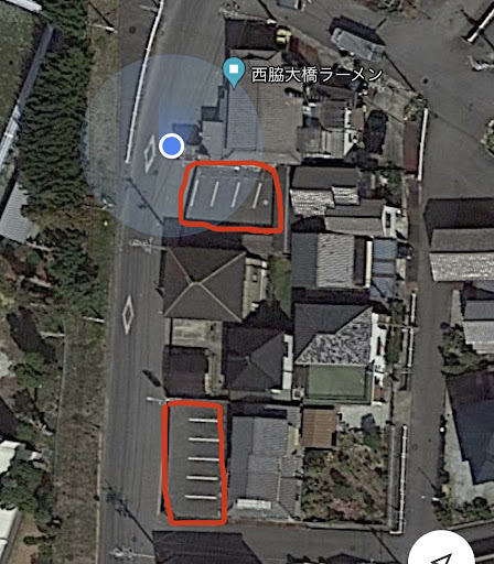 Read more日曜の11時20分頃に訪問。 すでに2箇所ある駐車場は満車だったため、あたりを探すも止めれるような場所は無かったので、駐車場の空いてるスペースに止めて、出る車を待つことに。※駐車場は店前と右に15メートルほどの所の赤印の2箇所。(写真参照 ) 予約は店前の予約表に名前を書き込む方式なので、とりあえず先にそちらを記入。 車で待つこと10分位で前の方が食べ終わって出てきたので、難なく駐車することが出来て店前のベンチに移動。