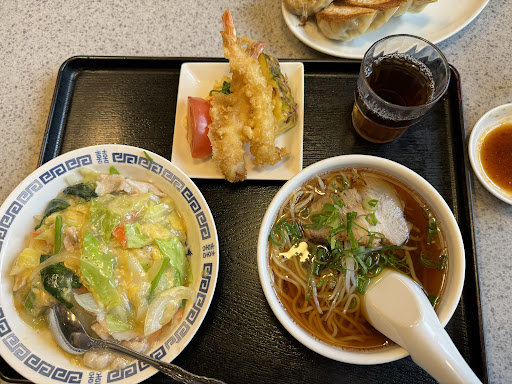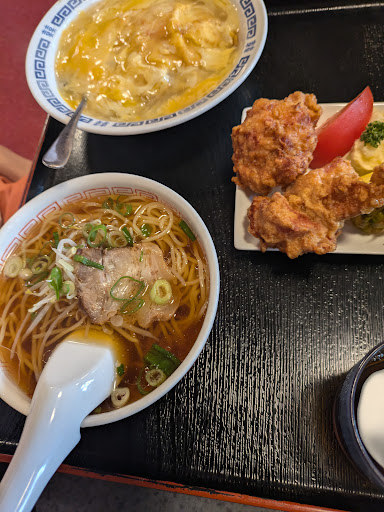 お昼も夜も定食(ランチ?)を頼めます。どれも美味しいのですが、唐揚げ定食は一度食べて欲しいなとおもいます。 熱々の唐揚げが沢山と、エビの天ぷらまで2本ついて来て満足できます。 ご飯もおかわり出来るので、大人の男性でも満足できると思いますよ!(大盛の場合はおかわりできません。と書いてあります。) 足りなさそうだなと思ったら、スープをミニラーメンに変更(+200円か300円位だったかな??)も出来るので、安心してください。 ここの唐揚げには、小皿に甘酢タレがついて来るので、それにつけて食べても美味しいし、普通に塩コショウをかけて食べても美味しいです。