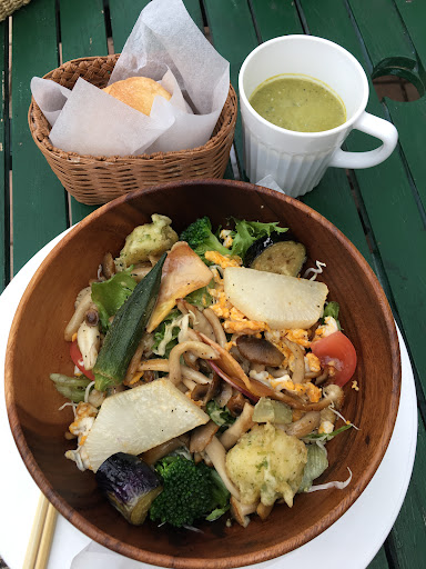Read moreGreat place where the staff still cooks proper meals (no chain restaurant). I had a delicious mushroom salad with a broccoli soup followed by a desert and a drink - for an affordable JPY 1300.-. My daughter had a hamburger sandwich- look at the pictures- An incredible value for such tasty food. A further plus - dogs...