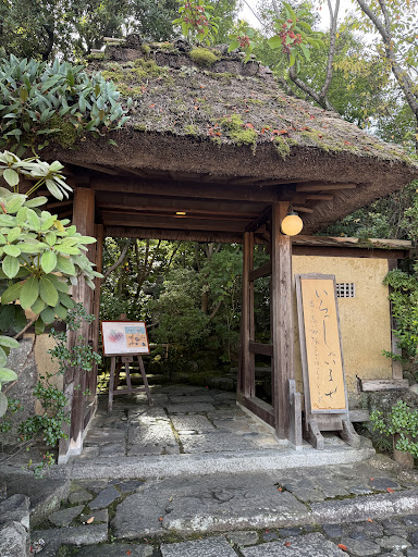 入口には茅葺きのような屋根の門があり、 お店の入口までにも石畳、チョロチョロと水が流れており、 風流な造りになっています。
