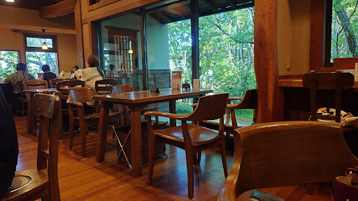 店内は、木材を基調とした温かみのある空間で、大きな窓からは豊かな緑が額縁に飾られた絵画のように広がり、息をのむほどに美しい景色が目に飛び込んできます。