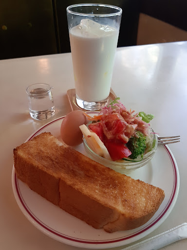 「Aモーニング」+0円 トースト、玉子、サラダのドリンク代金モーニングです。 11時までの提供でした。 サラダは少しリンゴもあります。 結構ボリュームありました。 玉子は、温かく剥きやすいものでした。 トーストは、山型厚切りが半分タイプを マーガリン多めで嬉しいです。
