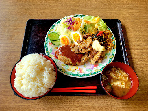 Read more喫茶店としては朝9時という遅めに開店します。 目玉はランチの定食でありますが、これまたランチタイムが短く11時~14時(ラストオーダー13時半)なので、狙っていかないと難しいお店です。さらに定休日が日~火曜日であるため、私の中ではレア店の位置づけとなっています。 ハンバーグ→ふわふわ感はなく、ぎっちりとしています。美味しいですが濃いです。 味噌カツ→比較的薄めにカットしたロース。味噌はサラサラ系でありますが濃いです。肉に下味がしっかり付けられていますので、塩分を抑えたい方は味噌を使わない方が良さそうです。 唐揚げ→やや大きめのモモ肉。とてもジューシーで美味しいですが、これも味が濃いです。マヨネーズがのっていますが、これは不要かと思いました。 ご飯→最近は炊き方を変えたのか、米の価格が上がったのが原因か分かりませんが、水分を多く含んで炊き上げているようで、ややベチャっとしています。ご飯泥棒でありますので、サイズはMかLが良さそうです。