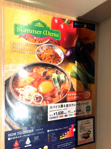 【スパイス薫る夏のカレースンドゥブ】 スンドゥブと書いてあるのに頭が勝手に○○チゲをイメージしてしまい、珍しかったから注文。辛さ→4辛、単品で注文。 (※ドリンクセット) 最初の何口かは、スパイスカレーぽかったけど途中から、ラタトゥイユに思えました。 スパイスカレーぽさはなかったです。 ラタトゥイユに豆腐が入ってる感じ。 スンドゥブチゲには、チーズや明太子、あと王道の味が合うと個人的には思います。 家でも、カレーに豆腐は入れないしね。