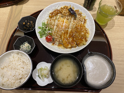Read moreプライムツリーで大好きなお店です!美味しい自然薯を安く食べれるところです。お勧めはチキンカツ御膳です。チキンが柔らかくジューシーです。自然薯のとろろも付いてきます。最高なのが麦ご飯おかわり自由という点。 一声かけるだけでおかわりできます。御膳を頼むと、メイン、小鉢、自然薯とろろ、漬物、味噌汁がセットなのでいつもご飯3杯はペロリと食べてしまいます。 ちなみに、LINEで友達追加すると、クーポンが貰えたりするのでお勧めです。さらに来店ポイントを貯めていくと、スタンプに応じて値引きクーポンや御膳無料クーポンなどの特典もあるのでその点も推しています。 店員さんも教育が行き届いており、みなさん感じが良く気配りができているなと感じます。 夜利用が多く同じ時間帯なので、スタッフの偏りはあるかもしれませんのであくまでも参考までに。 プライムツリーに行った際の...