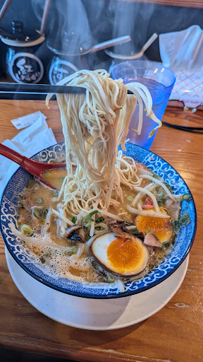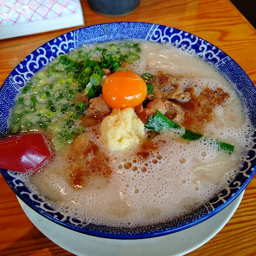 You can choose the type of your noodle; from hard( I would recommend it バーリ read as BARI), soft, etc. they only serve Tonkotsu based ramen (pork broth) which is really amazing the volume is just right but if you are not satisfied you can always ask for seconds (just the noodles) just say KAIDAMA and they will serve you another serving of noodles for...