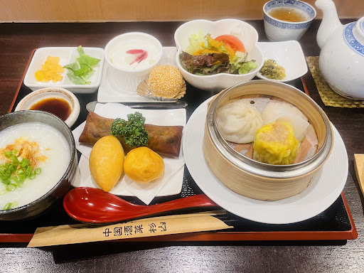 飲茶セットは蒸し物3つに揚げ点心3つ サラダ、お粥、デザートも付きます!豪華!