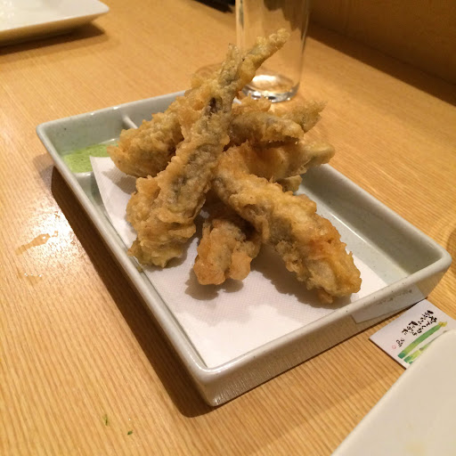 そして、本日のオススメという「太刀魚の天ぷら」を追加しました! 太刀魚の天ぷらは、今まで食べたことないので期待地が上がります〜♪ サクっと薄めな衣の下から登場するのは、あっさりとしたふっくらな太刀魚! 塩を少しずつ付けながら、おつまみとしていただきます