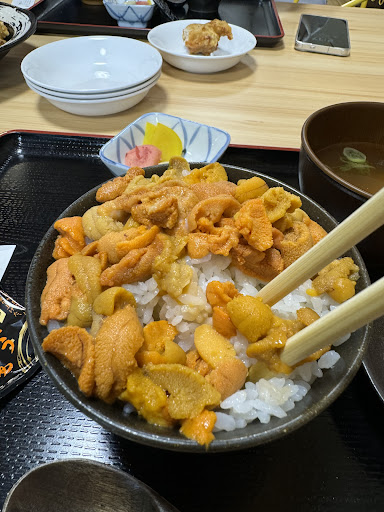 Read moreoverpriced - uni is slimy and small and it seems the store rips off tourists. do not recommend, save time and money to eat in sapporo directly. They make you order the set menu for 40 dollars and the uni is not fresh at all. The uni only bowl was around 33 dollars but they make you pay for the set menu. When the set menu comes it comes with the miso shrimp soup, not the crab soup shown in the picture. You have to pay another extra for that soup LOL. Terrible service and they try to argue w you if you say the menu picture is different from the actual thing. They wave a 100g package of uni and claim that was all in the bowl (it was not). Total false advertising.The picture shows a bowl full of uni. When we ordered you can see a very thin sheet of uni.
