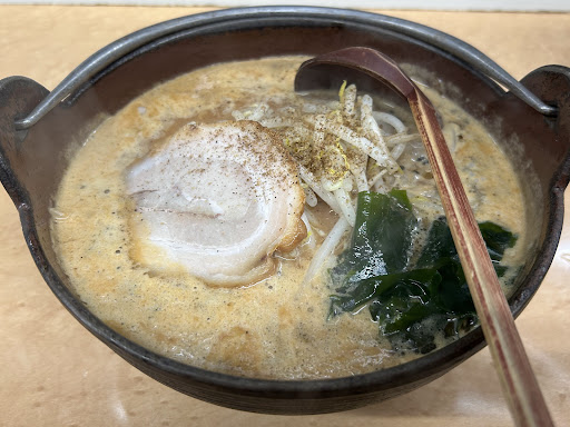 Read more定期的に欲しくなる謎味噌鎖店…「くるまや」倒産時に離反した店達だと勝手に想像、店舗によって差異がありメニューが違い味噌タレだけ共通してる各店路線。 HPも存在せず「ばんだい」と違い新しくFC参加もできない減るだけの絶滅危惧店、絶対にデフォ派なので「鉄鍋味噌ラーメン¥800」にサービス半ライスぉ。 ※因みに私のTOP1.2ゎ白河店と東浦和店。