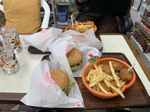 お店のおばさんはスーパー無愛想で常に機嫌悪そうですが、地元の常連さんには愛想良い所を見るとよそ者嫌いな感じがしますね。クチコミを見るとかなり酷い目にあってる人がいるようですが、普通にハキハキ注文し、普通にしてれば問題ないです。友人と2人で行って、私は元々声がバカデカいのもあり、注文をハキハキ伝えて何も無く、友人がボソボソ注文すると、もっとしっかり言ってよ聞き取れない、こっちは歳なんだから!とブチキレられてました。しかし、上に少し書きましたが、料理を食べている時にゾクゾクとくるお客さんには愛想良くてびっくり。ああ、常連さんには優しいやんだなーと思いました。と思っていたら、うちらにもお菓子出してくれたり、少しサービスしてくれたので、まぁ満足でした。ちなみにハンバーガーは小さめですが、目の前で作ってくれて作りたてなので、あたたかく、値段的に考えれば美味しく食べられます。イメージ的には学食を思い出す味でした。そりゃバーガーキ〇グや、モ〇バーガーに比べれば味は劣りますがね、値段も値段ですし。しかしMacにいくならこちらのお店にするかなー?私がMacそんなに好きじゃないというのもありますがね(朝マックを除く)。それにしても、唐揚げに刺さってるのが、フォークでも楊枝でもなく、ストローってのが爆笑。え?マジかよwって思いましたwだけど、このローカルさがいい!こーゆーお店ばかり周る人ならわかるこの良さ。フランチャイズのお店ばかり廻る人からすると、少し近づきがたい、または、合わ...