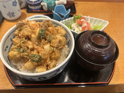 Read more天丼松を注文 海老2本、キス2枚、茄子、椎茸、ししとう、でボリューム満点です。椎茸が肉厚で美味しい。ご飯の量も多く、デザートにアイスもつくので、いつもお腹ぱんぱんになります。少食の方はご飯少なめで注文してもいいかもしれません。イカのお刺身を頼みましたが甘くて美味しかったです。添えてある菊も茹でて添えてあって一手間掛かっていたり、盛り付けも綺麗です。 天丼松は税込み1,600円ぐらい? この値段で気軽に美味しい天ぷらが食べられるのでオススメです。一品料理も沢山あって飲みで利...