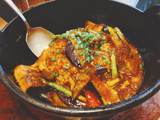 Read more豚の角煮がとても美味しい。台湾のルーローハンのような香りがする。鉄鍋は厨房からジュージュー音がするほど熱々の状態で運ばれて来て、その熱でついたおこげと角煮が合う。