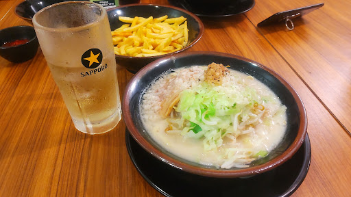 Read more夜の19:00頃に訪問しました。店内はさほど混んでなくすぐに席に座れました。 食券タイプではなく注文は店員さんを呼ぶスタイル。 ラーメンと餃子とハイボールを頼んでいたのですがハイボールのすぐ後にラーメン着丼で、食べ終わってしばらくしてから餃子が来ました。 忘れた頃にやってきた餃子はスーパーのチルド餃子のようで少しガッカリしました。 ラーメンは期間限定の塩壱郎ラーメン(並)を注文したのですが、こってりが大好きなのでクリーミーでとても麺に絡んでいて良かったです。 調味料で途中から豆板醤やニンニク、刻み生姜などを入れて味変も楽しめました。 こちらは麺の硬さのみ選べるのですが他のラーメンは麺の硬さ、背脂の量、スープの濃さをカスタマイズ出来るのも良いと思いました。 キャベモヤを追加するか迷ったのですが中々のボリュームなので追加しなくて良かったです。 小さい子供が居たのですがドリンクバーもお安く良かったです。 そして、たまたま11日に訪問したのですが11日はサービスデーらしくお得でした。 ライスもオープンから18:00までは無料で提供されているので男性でもお腹いっぱいになると思います。 ただ食べきれずにポテトを持ち帰りたいと頼みましたが衛生面の関係からかN...