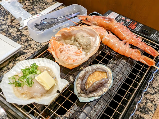 店内はテーブル席よりもライブ感のあるカウンター中心の店内。それでもテーブル席で家族でワイワイももちろんオススメ‼️浜焼きは焼いてる時が、楽しいですからね♪貝が比較瞬間と...