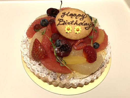 甘さ控えめ大好き民は引きずってでも連れて行きたいケーキ屋さんです! 自称タルト狂なのでタルトばかり食べいつも辛口意見してしまうのですが、タルト生地はクッキーとパイの間のような絶妙な匙加減、甘さ控えめの中の生地とカスタード。控えめに言ってもいままでの人生最強のタルトに出会えたと感謝感激しております。 ホールは大きなフルーツが盛り盛り! (おそらく)洋梨?のタルトも食べましたが、洋梨自体が甘めだったので、柑橘系のタルトがバランス良く大大大好きです。