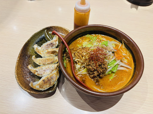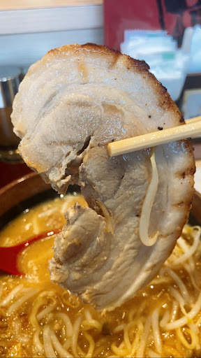 Read more金曜日の開店5分過ぎに入り、店内き響き渡るいらっしゃいませ〜に迎えられ着席。店員さんの接客はきちんとしている。初めて入るラーメン屋ではラーメンという1番シンプルな物を頼むのがマイセオリー。餃子もお試しで頼んだ。頼んでから、写真をよくよく見てみると、チャーシューが1枚も乗ってない。その代わり?皮付きポテトフライが2個と味付き玉子が半分。流石にそれは寂しいので、トッピングで炙りチャーシュー1枚追加。1枚140円は安いのか?高いのか?北海道味噌のラーメン、スープはおおっ!ガッツリ味噌!程よく乗ってるモヤシが良いアクセント。麺はモチモチしていて硬さも丁度良い。トッピングのチャーシューは…。チャーシュー麺にしなくて良かったと思う。140円の価値は無い味と硬さ。もっとトロリとしたチャーシューが良かった。餃子は薄皮だけども餡がしっかりしていてニンニクも効いてまずまず。全体...