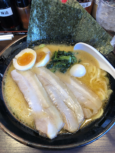 Read more店の見た目から壱角家系列かと思い長らく敬遠していましたが、今回初めての入店してみました。 ググってみると市原が本店で、ここはその支店のようです。 店内に入ると正面に券売機。 醤油、塩、味噌の豚骨だけでなく、つけ麺やまぜそばもあるようですが、初見ということもあり基本の醤油豚骨ラーメン(700円)を全て普通でお願いしました。 カウンターから厨房内は見えるのですが上側しか見えないため、寸胴で炊いているのか分かりませんが、少なくとも麺は樹脂クレートに入っていたので酒井製麺ではないと思います。 着丼は約10分後。 スープの色は明らかに壱角家よりちょっと赤みがあり、全て普通で頼んだスープを飲んでみると結構オイリーです。 どこかの味と似ている・・・? 千葉の吟家かな? トッピングは海苔3枚にうずらの卵一個、ほうれん草にチャーシュー一枚でこの手のラーメンの基本形です。 ここのライスはサービスではなく、おかわり自由なライスバー(100円)という形態です。 ラーメン単体だと味普通でもしょっぱさを感じたので、お腹に余裕があればライスをお供にがお勧めです。 吉村家直系や王道家系列以外は家系とは認めないといラーメンマニアは別として、普通の人は本物、偽物にこだわることなく、これはこれでありでしょう...