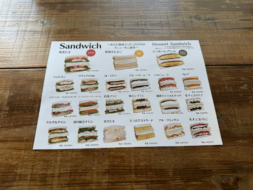 Read more住宅街の中にあるが、敷地内に駐車場が数台、周辺のコインパーキングもあるので、停められなくて困ったことはない。 お店の雰囲気は、壁に浮世絵が飾ってあったり、アンティーク家具があったり、シック&ゴージャス感あるが、アメリカンテイストのベンチがあったり、なかなか面白い。店主の趣味かな? ショーケースに色とりどりのサンドイッチが並ぶ様は、ケーキ屋さんのショーケースを眺めているようで楽しい。惣菜系スイーツ系合わせて20種類はあるが、どれもひと工夫されている感じで、努力されているのが窺える。 ボリュームがあるサンドイッチで、惣菜系スイーツ系一つずつ食べるとかなり満腹感あり。コンビニ行っておにぎり、サラダor惣菜、あとちょっとスイーツ、などやっていると1,000円はすぐなので、健康的にサンドイッチ専門店の方がよくて、週一ペースで利用してます。 可愛く愛想のいい店員さんと、ハニカミ屋?のシェフ、面白いシェフがいて、ほんわかした雰囲気なのもいい。キッチンが売り場に面していて、作業風景がチラっと見えるのが楽しい。前のお客さんが終わるのを待つ間、忙しくなければ気さくに話してくれて、接客の感じがいい。 個人的にはスイーツ系のホイップクリームがもうちょっとあっさりだと言う事ない...
