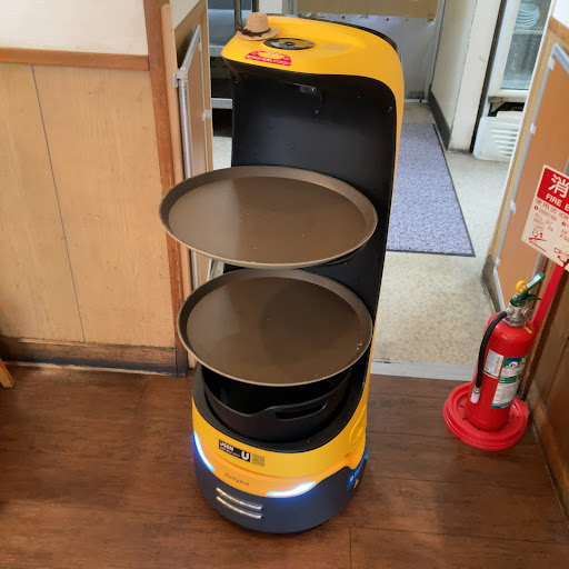 メーカーが違うようですが、同じ働きです。 配膳専門で、下げ膳は任されていません。 音楽を鳴らしながら自走する姿はカワイイです。