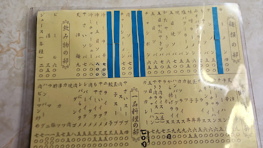 10時オープンの貴重なお店。車は店前に軽自動車なら道路にはみ出しちゃうけどもギリギリ2台停められるかな?カウンター7席。4人がけテーブル3卓の小さな中華店。おばぁちゃん2人で切り盛りしてるようでした。昭和レトロ感満載。お値段も昭和のまま!窓全開で扇風機なので真夏は相当暑そう(汗) 焼き肉ライス(上)と餃子を注文。焼き肉は味が濃くてとても美味しかったです。餃子は家庭で作った感じの餃子だけど、それはそれで良いかな! 優しいおばぁちゃんが世話やいてくれて、お水やらお茶やらたまっていく(笑) 近所の常連さんが食べに来てて実にゆったり落ち着くお店。 こういう雰囲気好きな人にはたまらないお店だと思います。...