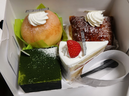 Read more抹茶のティラミスとカフェラテを店内でいただきました☕️甘すぎず重すぎず抹茶が効いて美味しいティラミスでした 持ち帰りでスイートポテト🍠とレモンケーキ🍋を購入 親切でにこやかな店員さんに対応していただきお土産用の箱菓子詰め合わせも購入で大満足です✨ 店内にはGLAYのテルさんのサインが飾ってありびっくり😳 店長さんでしょうか、パティシエの方が大ファンでテルさんをイメージしたケーキを作り本人にお知らせしたらサインを送って下さったとのこと‼️ ヤヴァイという黒と赤のケーキでした(...