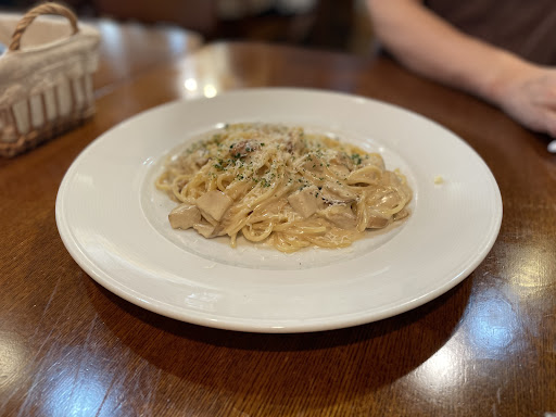 注文したのはカルボナーラにあさりのビアンコ、のセットになります セットも数種類あり私が頼んだのは サラダにパン【このパンにはバーガーのようになっており、サラダをはさんで食べる仕様になっている】そしてガーリックパンにドリンクと盛り沢山な内容 特に驚いたのはカルボナーラ!! 何が違うのか?チーズが違う? いや全てが違うのだ!! 確かに出来上がりを奥さんが運んできた時に、一言 「卵だけが国産です」…と 早速一口食べてみた…… お〜!なんて濃厚なんて美味!! こりゃ美味い 生まれてから食べた カルボナーラの中で間違い無く ナンバーワンの味、正直びっくりしました それもそうでしょ、シェフの旦那様が 本場で修行されたとの事… 間違い無いはずですね〜😁 その後追加でデザートの華プリンと 流行りのビスタチオのジェラートを 食べましたけど、これまた美味い! 最初にオススメされた アワビのパスタを頼んでおけば 尚、良かったかなと思いました まぁ次回食べたら良いんだよね☺️