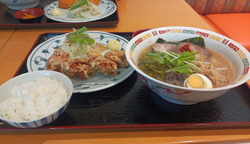 Read more唐揚げの付いた定食をたのみましたが唐揚げも美味しくボリュームもありました ラーメンもトッピングがたくさん入っていてお得な感じでした ただ味は少し薄かったのとパチンコ屋なので仕方ないのですがタバコ臭と音が気になりました 評価は3にしていますが定員さんは感じよかったですしコスパも良いので...