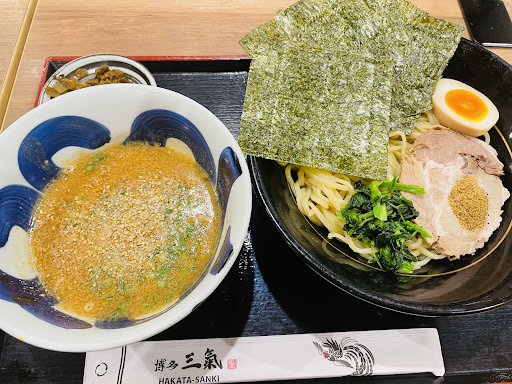 ツンツクツンツク。イオンモールでお昼ごはんを食べよと探していたらつけ麺発見。 みなさんはつけ麺はお好きですか?わたしは食べたことありません。という事で、初つけ麺でございます。レジにて発注。海苔トッピングはお忘れなく。 フードコートなので席を取りに行き知らない老夫婦の隣の席へ。そして水汲みに行き待つ事5分。 そして取りに行き席へ戻ると老夫婦は消えて居なくなっていた。何かの間違えかとおもい目を擦ってみたが、やはり居ない。あの老夫婦は幻かもしれない。 とりあえずスープを飲むと魚介豚骨の旨味が口いっぱいに広がりました。さて麺はどうだろうか。中太ストレートの喉越しいい味わい。味の強いスープに負けていない、あくまで麺がメインだと主張してくるそんな味だった。 トッピングはチャーシュー、味玉、ほうれん草、海苔。この名脇役たちが麺とスープに花を添えていました。主張しすぎず、でも出るとこはでる、主役ではないけどいつもいる俳優さんみたいな存在。 つけ麺の素晴らしさを初めて知りま...
