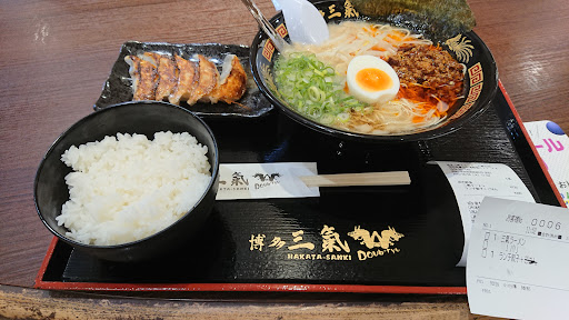 オープン日は流石に行列、 三氣ラーメンと平日ハッピーセット 餃子 ごはん(920円)をオーダーし 会計を済ませます。