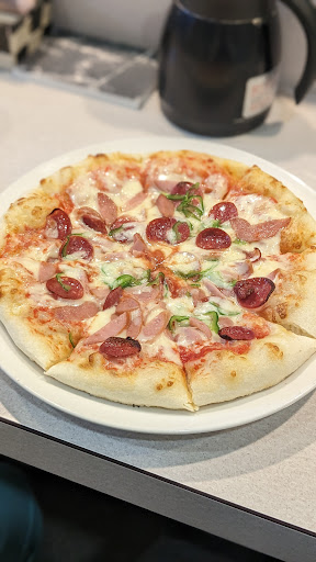 Read more場所は駅の隣の物産館の中にあります。カウンターのみですが、最初入りにくい感じはありましたが、入ったら気さくなお店の方でした。メニューはピザかパスタのみで、オーダーしたカレーパスタが激ウマでした❗カレーにご飯は、メニューに無いのだが普通にカレーライスで提供しても良いくらい、手作りカレーの味がしました。そんなに辛くなく食べやすいです。少ないかな?と、大盛りにしたらかなりのボリュームで、ちゃんとしたエビが盛り沢山で内容とお値段はかなりお得でした。カレーパスタは1000円で大盛りはプラス300円です。ピザもチーズ多めで1300円です。 凄く良いお店...