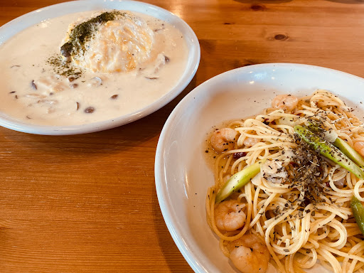 Read more美味しいんだけど、料理くるまでとにかく長いなあって思います。とにかく待たされる。値段も全体的に高いなあって思います。 でもパスタとか美味しいです。子供と行くときは、一緒にタラコのクリームパスタ食べます。 大好きな大葉も入っていて大好物です。