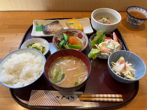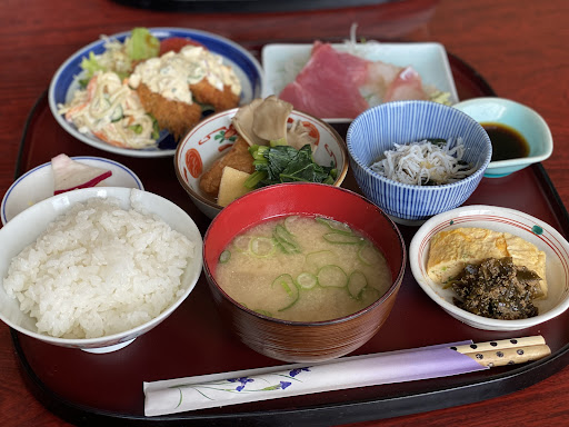 刺身の切り口や、刺身のツマ(に混ざっている大葉)を見れば一目瞭然、家庭的な定食屋とは一線を画す割烹料理の定食だと判る。品数が多く、メインは焼いたり揚げたりした魚、必ずついてる刺身、手の込んだ小鉢の数々、ごはん、味噌汁、漬物。ほぼ毎回全て、小鉢も漬物も作られている。市販品を盛り付けただけというのは、これまでに約25回訪れたうち、ミートボールとイカの塩辛の2つくらいだった。それだけのものをこの値段で食べられるのは奇跡のようなものだ。