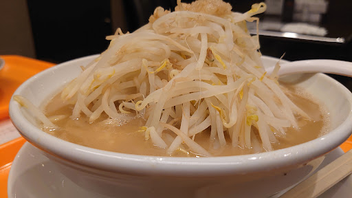 二郎系。 ラーメン200グラム・野菜マシ・脂マシ。 麺が平打ちなのが新鮮。結構かためで「ワシワシ」した感じ。スープは乳化しているが、個人的にはもう少し進んでいた方が食べ応えがあると思った。 野菜はマシマシではないので、言わばタワーかなにかのように積み上がったものではないが、崩したりスープと絡めて食べたりすることは容易。 お店はセルフ方式。食券を購入し、お店の人に渡すと、着席するところを指定される。出来上がったらその席の番号で呼ばれるので、厨房横の渡し口から受け取る。食べ終わったら下げ膳のところに渡して店を出る。 テーブルにはタレがあるので、味を濃くしたい場合はこれをかける。また、ニンニクもセルフで乗せ放題だが、食後のスケジュールなどを考慮しながら調整する事が必要。