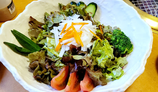 Read moreマンボー(コロナ蔓延防止)下の金沢を避けて野々市へ;2021年6月のお話。 メニューに美味しそうなのがアレコレ並んでたので、いろいろ味わえる「Aセット」オーダー。 後々これが大正解だったと気がつくことになる。 牛ホルモンと豚ホルモンの定番どころが入っており、しかも量が二口分ほどで「試し」には打って付けのボリューム。 コレとは別にサイコロカルビ、自家製野菜のサラダ、ユッケジャンスープをオーダー。 どれも当たり!の美味しさ。 写真を撮ってると親父さん、仕込みの肉を見せてくれる。 なるほど!これは「当たり」なわけだ。 いわく…「xx牛だからといっても、すべてが美味しいとは限らない。二等級三等級ともなれば無名ブランドの一等級の方がずっと美味いモンだ。そこを見極めて仕入れてくるのが目利きだな」