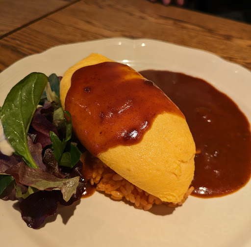 「オムレツ」の完成度がすごいです。ぷるぷるな卵にナイフを入れる瞬間がたまりません。 卵じたいも美味しいし、ソースとケチャップライスのバランスも絶妙で濃すぎず美味しい。これならチーズ入りのチョイスも良さげです。 今日は欲ばらず単品で頼んで正解。お腹いっぱいになりました。