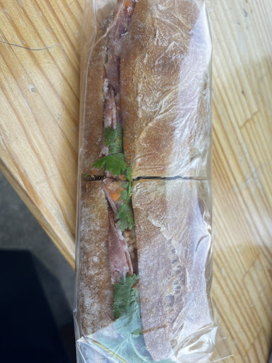 冷蔵ショーケースには、 フレッシュなお野菜やお肉をたっぷり挟んだ サンドイッチ類がたくさん。 そんな中にはドーム状の成型のパンを 発見。何だろうこれは? 気になって手に取ると、 結構ずっしり。 冷蔵商品ということも あるので、 買って早速いただくことに。