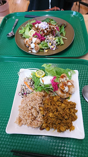 Since there are no reviews in English (that I saw) I thought I’d leave one. The shop is a nice place to buy local produce and organic food that you’d have a hard time finding other places. Especially since the move, they have lots of really great stuff. The restaurant serves vegan food that is healthy and tasty—those two don’t always go together. The sides will probably be cold—not something everyone likes—but the soup, rice, and whichever main you choose are always hot. They used to put tofu on their salad, which they unfortunately don’t seem to do anymore, the mains you can choose from have expanded. I really like the soy meat which has a really good sweet and tangy sauce on it. You can now order take out really easily and they have pre-packed bento as well, which is convenient. I work nearby and now I can pop over and grab a bento and some chocolate.