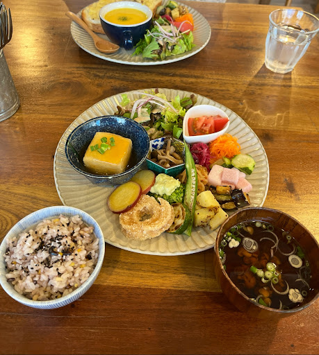 私はヴィーガンランチを頂きました! ご飯少なめでおかわりできますと言って下さったので男性の方でも満足する量になると思います✨ お味はヴィーガンとは思えないほど、しっかりとした味付けで美味しかったです😍 友人が頼んでいたホットサンドもスープも美味しそうでした💓